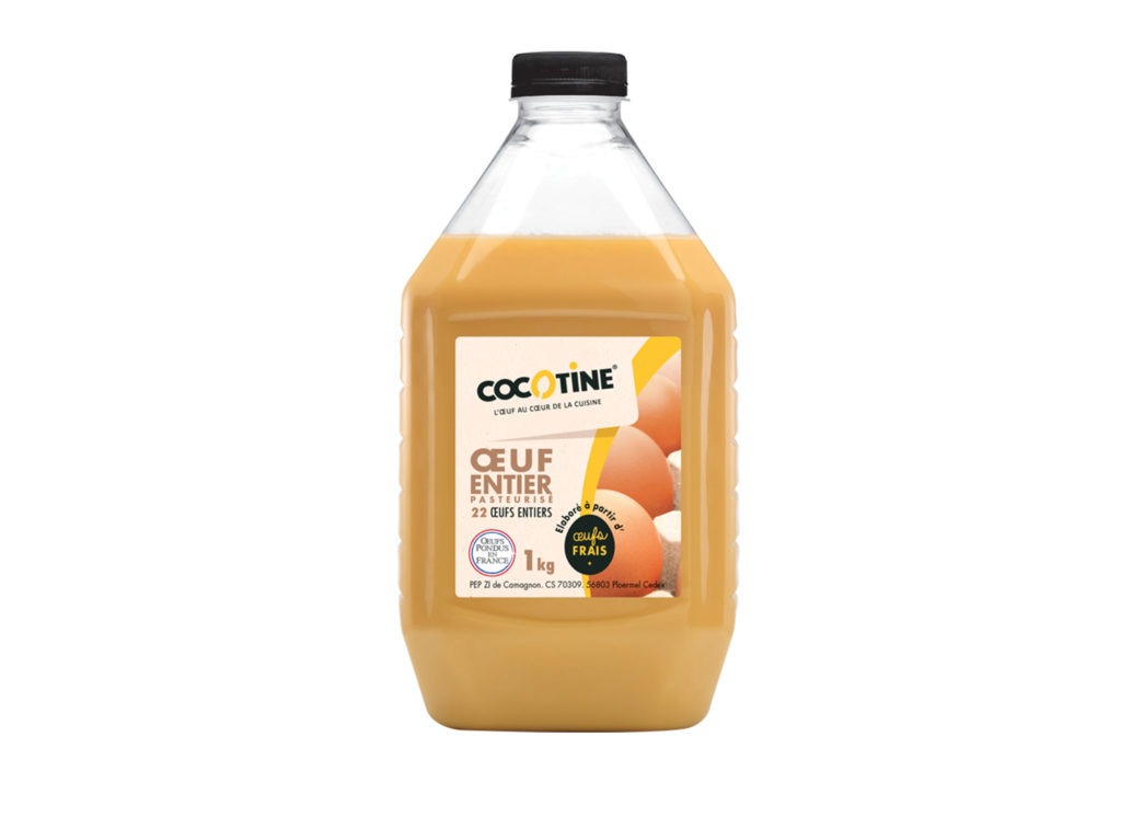 Producto crudo y natural, el huevo entero Cocotine ofrece infinitas posibilidades de crear unas recetas adaptadas a los comensales, tanto dulces como saladas. Gracias a su envasado en botella transparente, el huevo entero pasteurizado le permite ahorrar tiempo en la preparación de los platos.