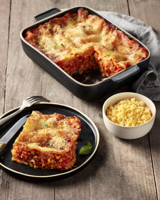 - Montez le plat : alternez les couches de pâtes à lasagnes et votre bolognaise d’œufs dans un plat familial.